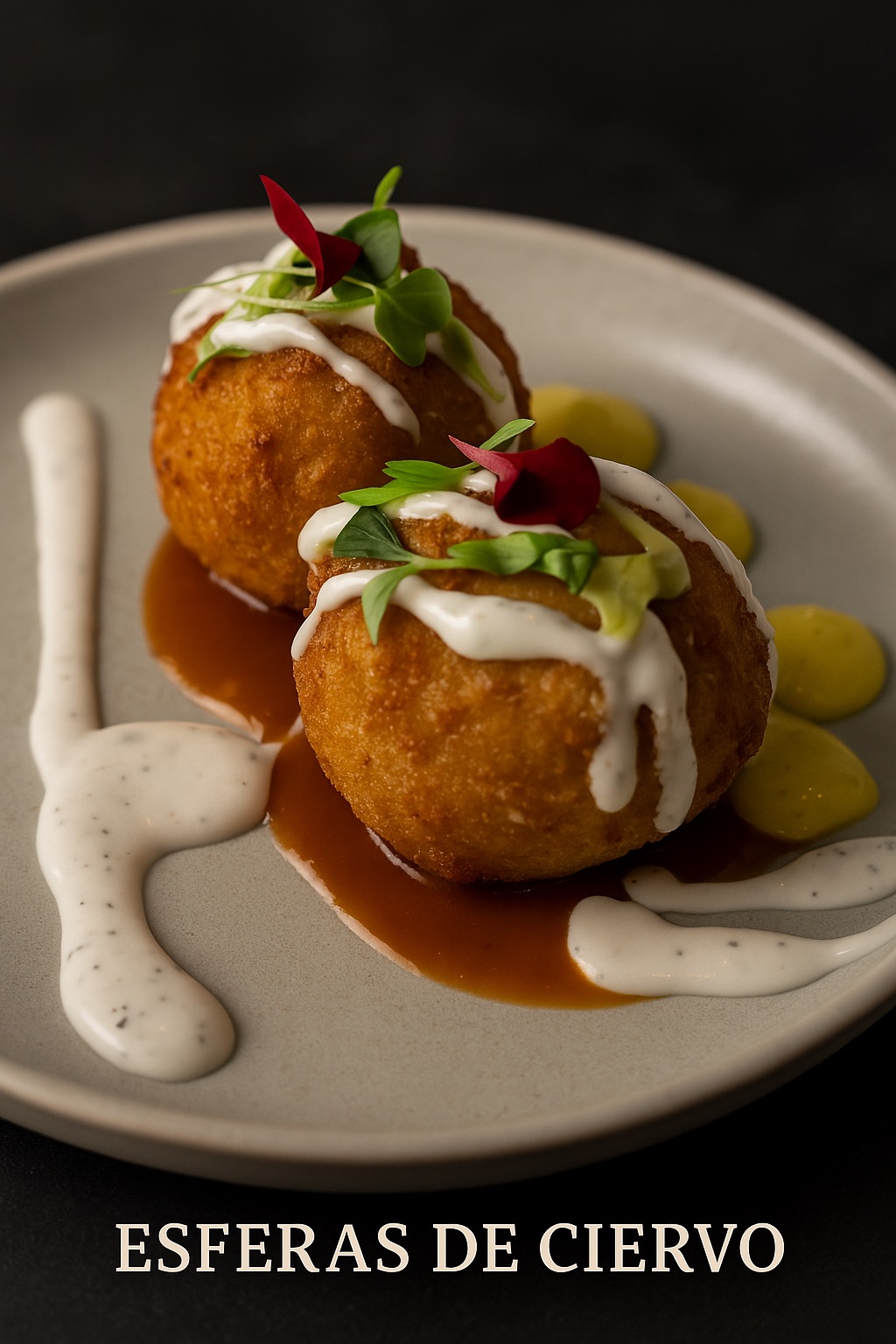 Sorpréndete con nuestra exquisita Esfera Rellena de Ciervo y Setas. Esta delicada esfera, elaborada con ciervo tierno y una mezcla de setas silvestres, ofrece un equilibrio perfecto de sabores y texturas. Cada bocado es una explosión de jugosidad y aroma, ideal para quienes buscan una experiencia gastronómica sofisticada y memorable.